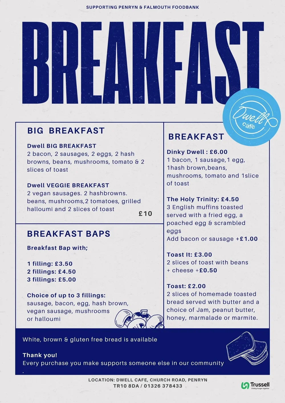 Every purchase helps support the Falmouth & Penryn Foodbank, part of the Trussell Trust network.